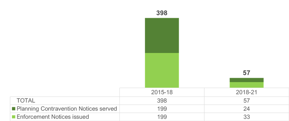 - Government statistics show that the number of planning enforcement notices issued in Enfield has declined by 85% since 2018.