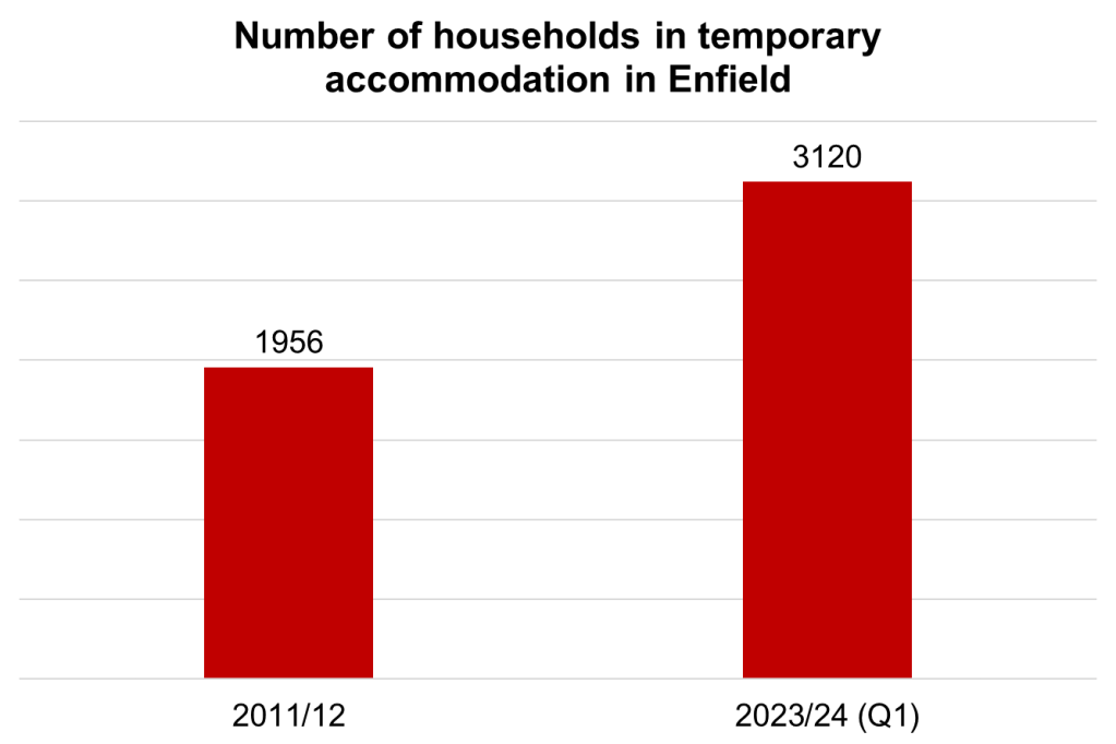 - Rates of homelessness in Enfield increased to amongst the highest in England.